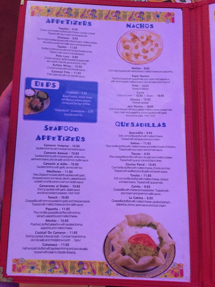 Steak, shrimp and scallops, sauteed with spinach, onions, poblano peppers, garlic, garbanzo beans, baby corn and pico de gallo. Topped with melted cheese. Served with guacamole, 3 flour tortillas, rice and beans.